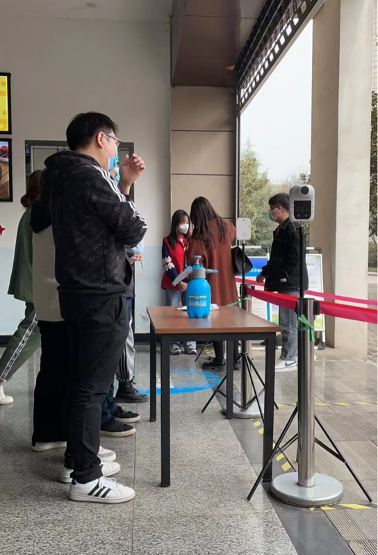 他们在维持核酸秩序的队伍里,在食堂测量体温的站点上,在疫苗接种的工作台