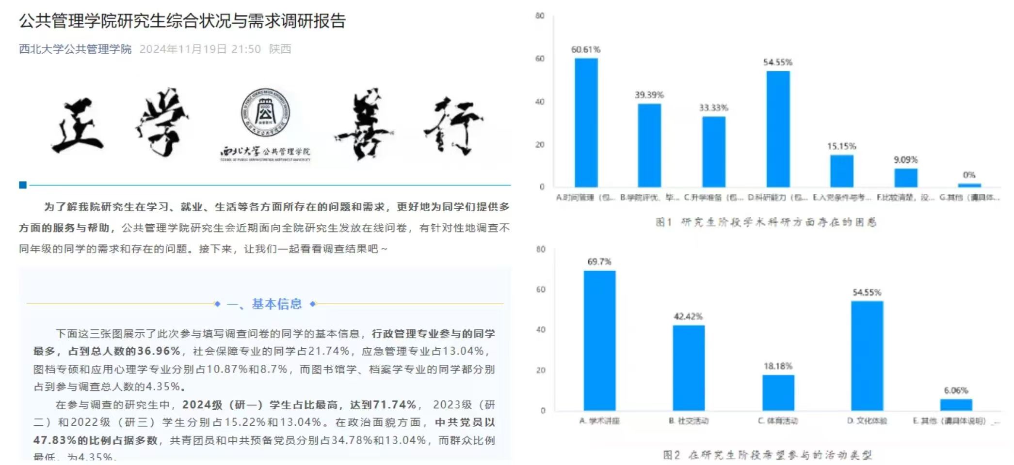 在学院公众号上对我院荣获2023-2024年度全国大学生志愿服务西部计划考核等次优秀志愿者的3名研究生进行专题报道,这些学子们卓越的表现和无私的奉献精神,是对“正学善行”院训精神的最好践行,为学院乃至整个社会树立了优秀的榜样。