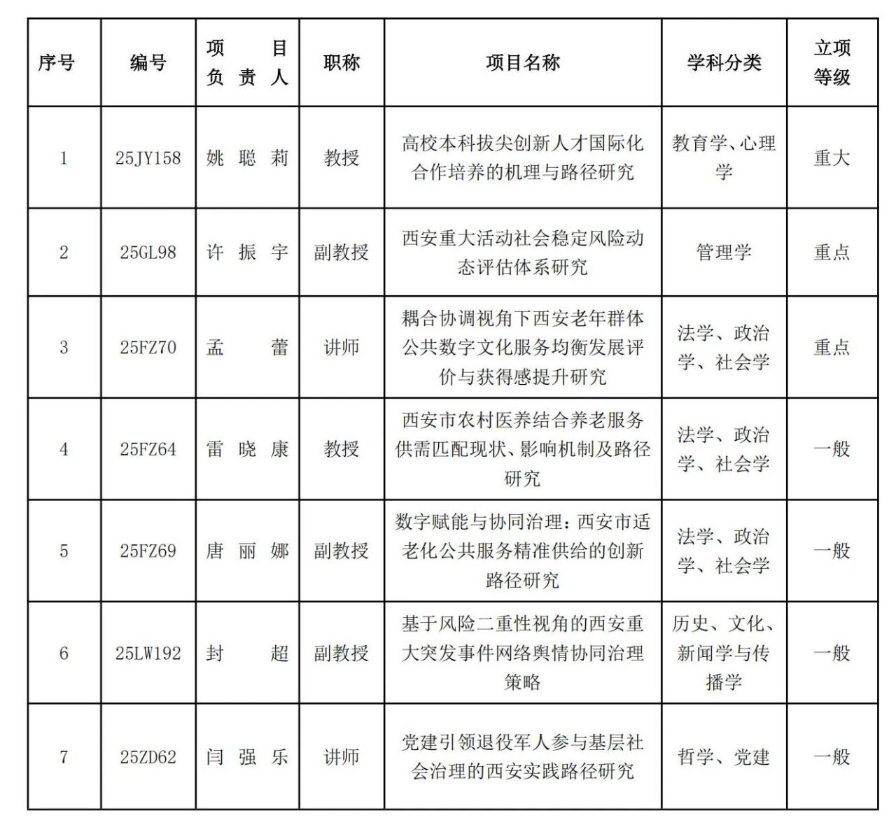 (2025年度西安市社会科学规划基金项目立项评审结果)