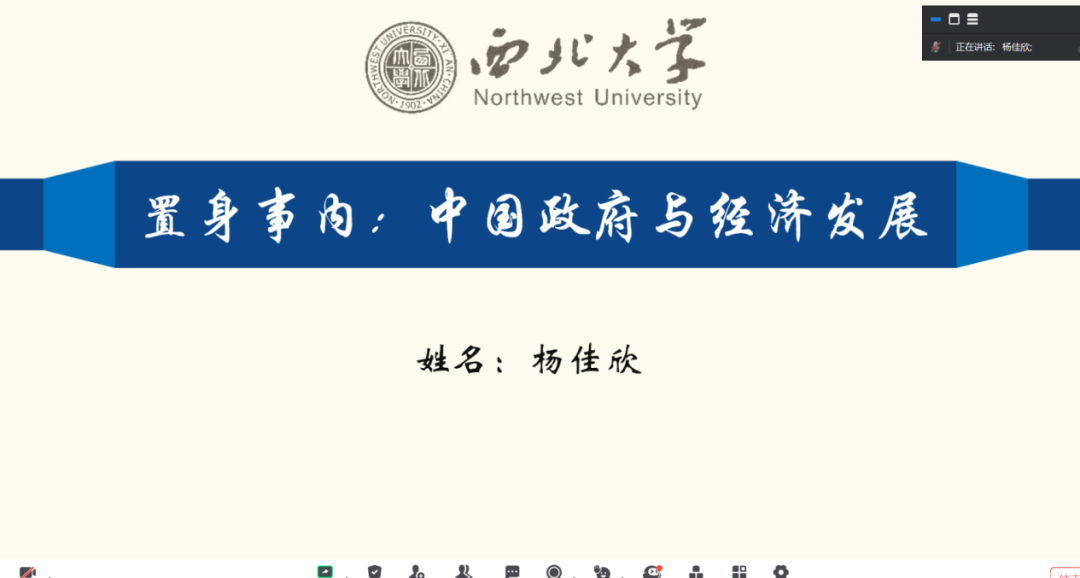 2021级图书馆学杨佳欣同学分享的书籍为兰小欢的《置身事内》,该书是作者将经济学原理与中国经济发展的实践有机融合,以地方政府投融资为主线,深入浅出地论述了中国经济的发展,并采纳了各领域学者的研究成果。她指出,通过对中国政治经济体系的论述,作者简明地刻画了地方政府进行经济治理的基本方式,并指出,中国政府通过深度介入工业化和城市化的进程,在发展经济的同时逐步推动了市场机制的建立和完善,以一种有别于所谓发达国家经验的方式实现了经济奇迹。基于对改革历程与社会矛盾的回顾与分析,作者也在书中对当前推进的市场化改革与政府转型进行了解读。