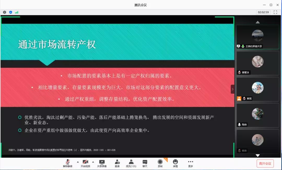 王铮老师分享的研究主题是《数据治理的产权基础》。研究率先指出各种各样的要素都需要金融市场进行市场化的配置,由此话题引出对于数据市场地各项要素如何进行配置的相关讨论。首先,阐述了要素需要市场化配置的原因,其中包括为什么数据市场也要进行要素配置?紧接着探讨了数据市场是否符合传统市场的一般规律,分别阐释了数据市场运行机制的两种不同观点、关于知识交易的理论基础、产权的作用等问题。最后,研究借鉴“数据石油”和“数据阳光”两个比喻形象生动地表达了数据治理的产权属性。这对于数据治理方面的研究具有很大的参考价值。