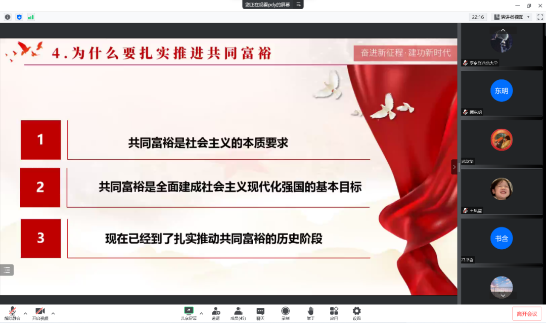 2022年11月25日,本科生人力资源管理系党支部于线上开展“支部微党课青年说”学习活动。支部书记杨嘉仪同志主持活动,支部全体党员参加。