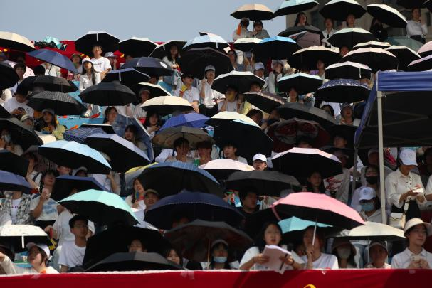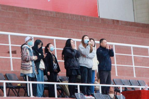 风雨中,同学们激情呐喊